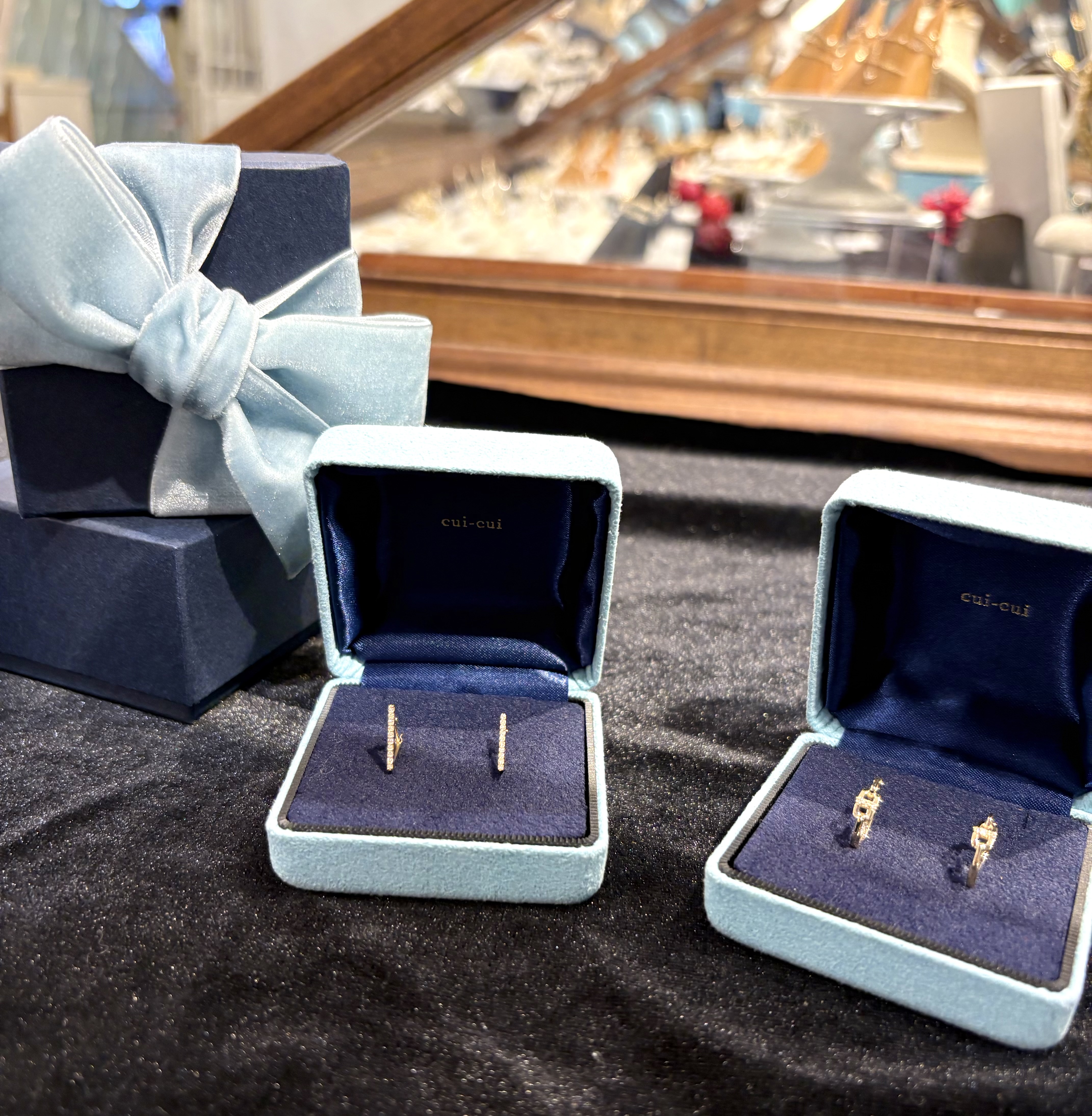 どちらもスナップ型のピアスでしっかりとボリューム感のあるアイテムです。