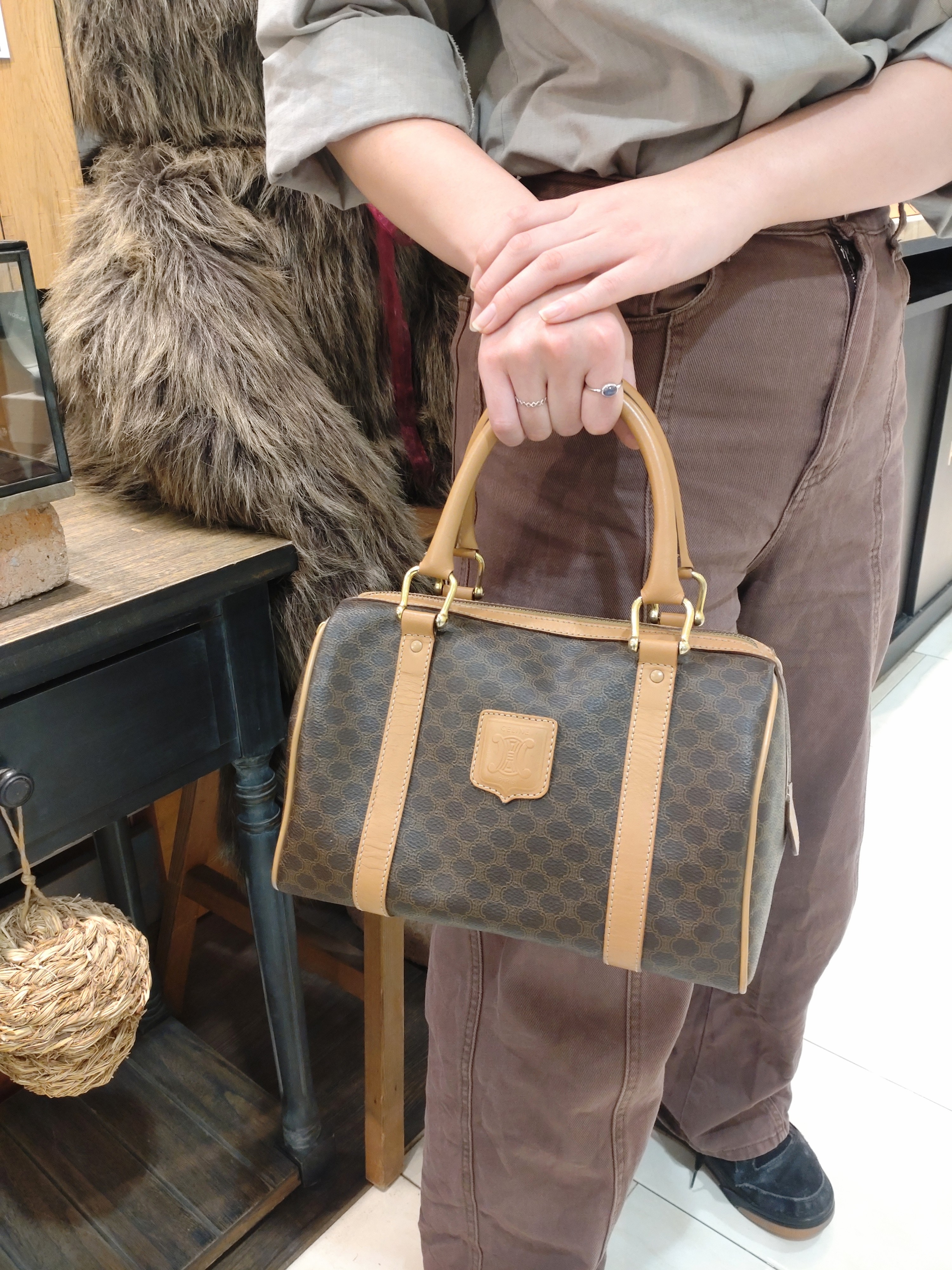 オールドセリーヌの代表格、「マカダム柄」のクラシックな色合いが可愛い、ボストンバックです!