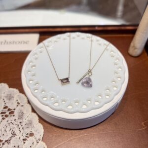 二枚目の右側のネックレスはダイヤモンドのネックレスにピンクアメジストのチャームを組み合わせています!