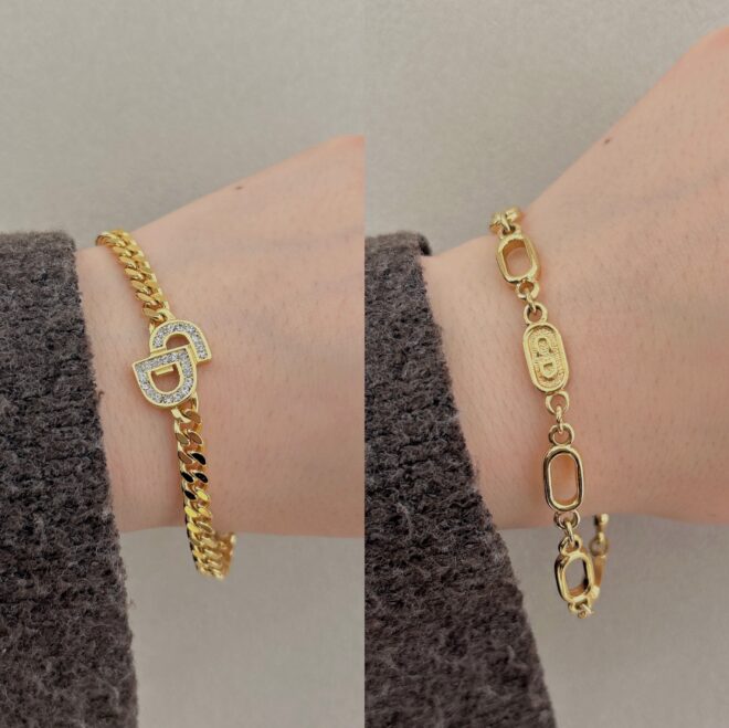 ブラウンベースにゴールドの金具が上品できれいめな印象を与えます