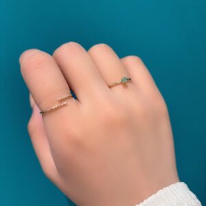 丸型(画像 薬指)はお持ちのリングと重ね付けでコーデがしやすいデザインになっております(^^♪