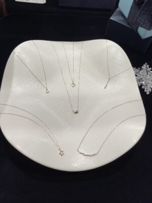 左側のネックレスはスターをモチーフとしており3石のダイヤがあしらわれたネックレス