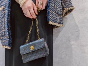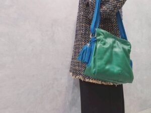 グリーンとブルーのコントラストが鮮やかなLOEWEのバッグ。