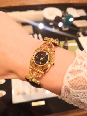 GUCCIの代表的なデザインである、馬具のハミをモチーフにした「ホースビット」デザインの時計です!!