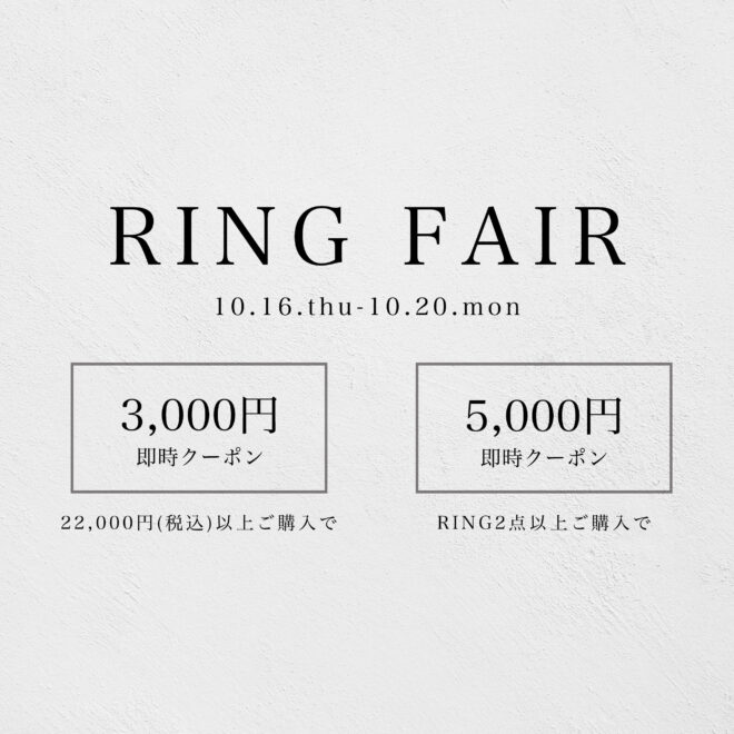 期間中¥22,000(税込)以上のリングご購入で、¥3,000 OFF